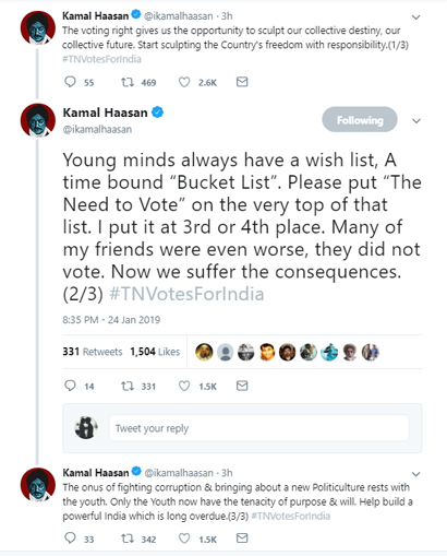 இது குறித்து அவர் ட்வீட்டரில் வெளியிட்டுள்ள பதிவில், இளம் மனதில் எப்போதும் ஒரு ஆசை பட்டியல் உள்ளது. அதில், வாக்களிக்க வேண்டிய அவசியத்தை மிக உயர்ந்த இடத்தில் வைக்க வேண்டும்.
